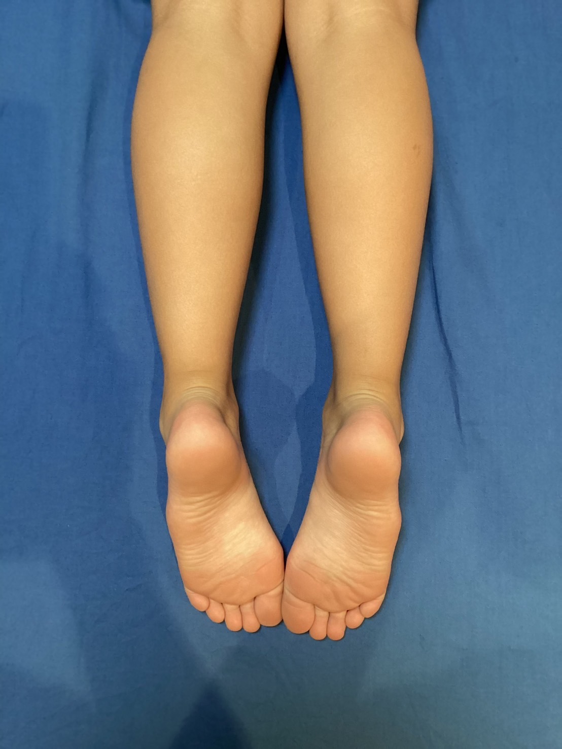 左右の脚長差、仰向け脱力時のつま先の外旋位の差